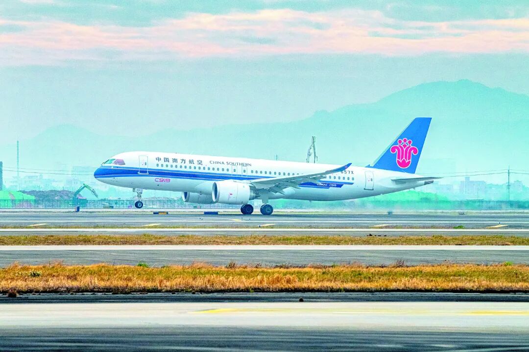 圖為一架南航C919國產(chǎn)大飛機(jī)在廣州白云國際機(jī)場起飛。 新華社記者 王瑞平 攝