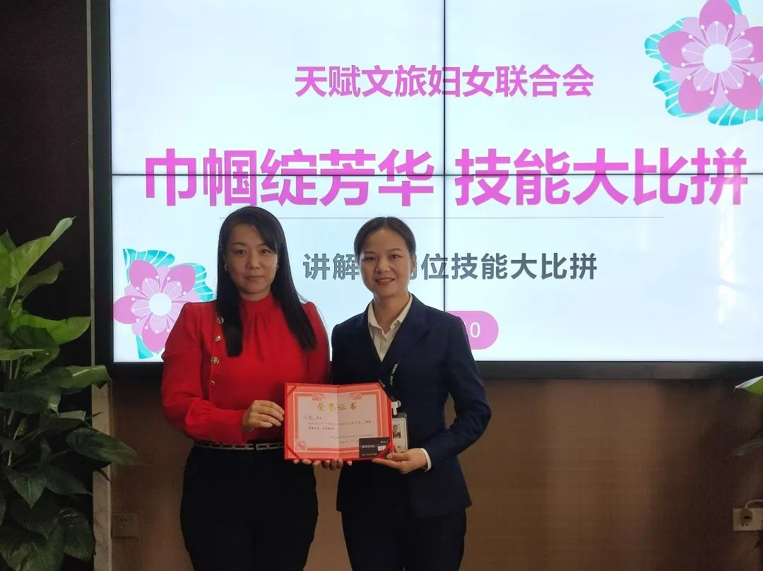 近日,天賦文旅公司婦聯(lián)組織開展了“巾幗綻芳華技能大比拼”主題系列活動,鼓勵女職工學習業(yè)務(wù)綜合知識,更好地展示公司女性員工健康自信、積極向上的精神風貌。
