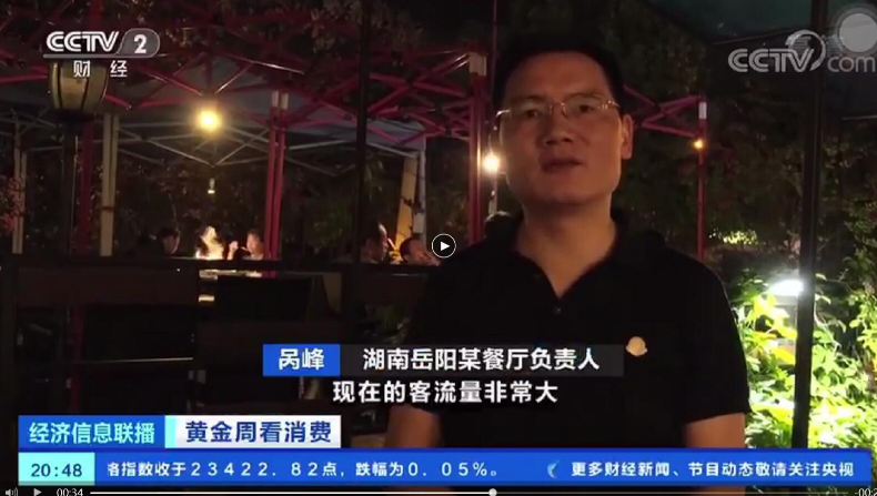 岳陽某餐廳負責(zé)人 咼峰:現(xiàn)在的客流量非常大,不管是中午還是晚上,基本上都是滿座的,后面幾天的預(yù)定都非常不錯,已經(jīng)預(yù)定了八九成了。